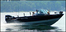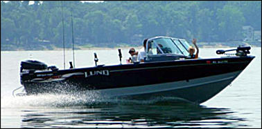 a 9.9 Mercury, Lowrance electronics, and Minn Kota trolling motor.